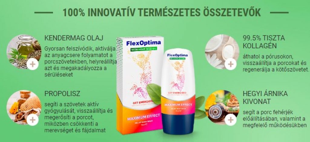 Amint azt már korábban is olvasta, a FlexOptima olyan természetes összetevőkből áll, amelyek felelősek azért, hogy a terméket ilyen hatékonyan és biztonságosan használhassák, mivel az nem jelent mellékhatásokat egészségünk számára. Ezen összetevők közül néhány: